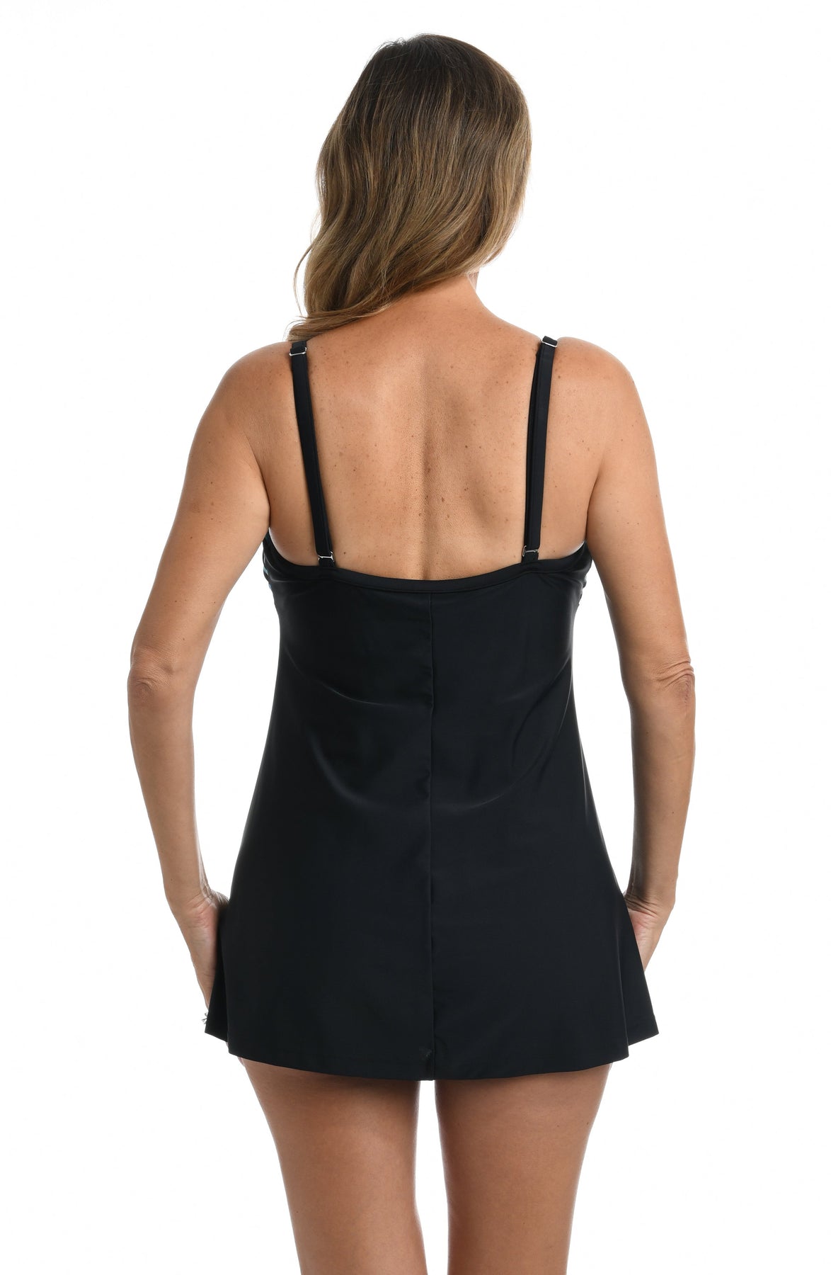 Textured Spa V-Neck Swim Dress One Piece (Plus Size)