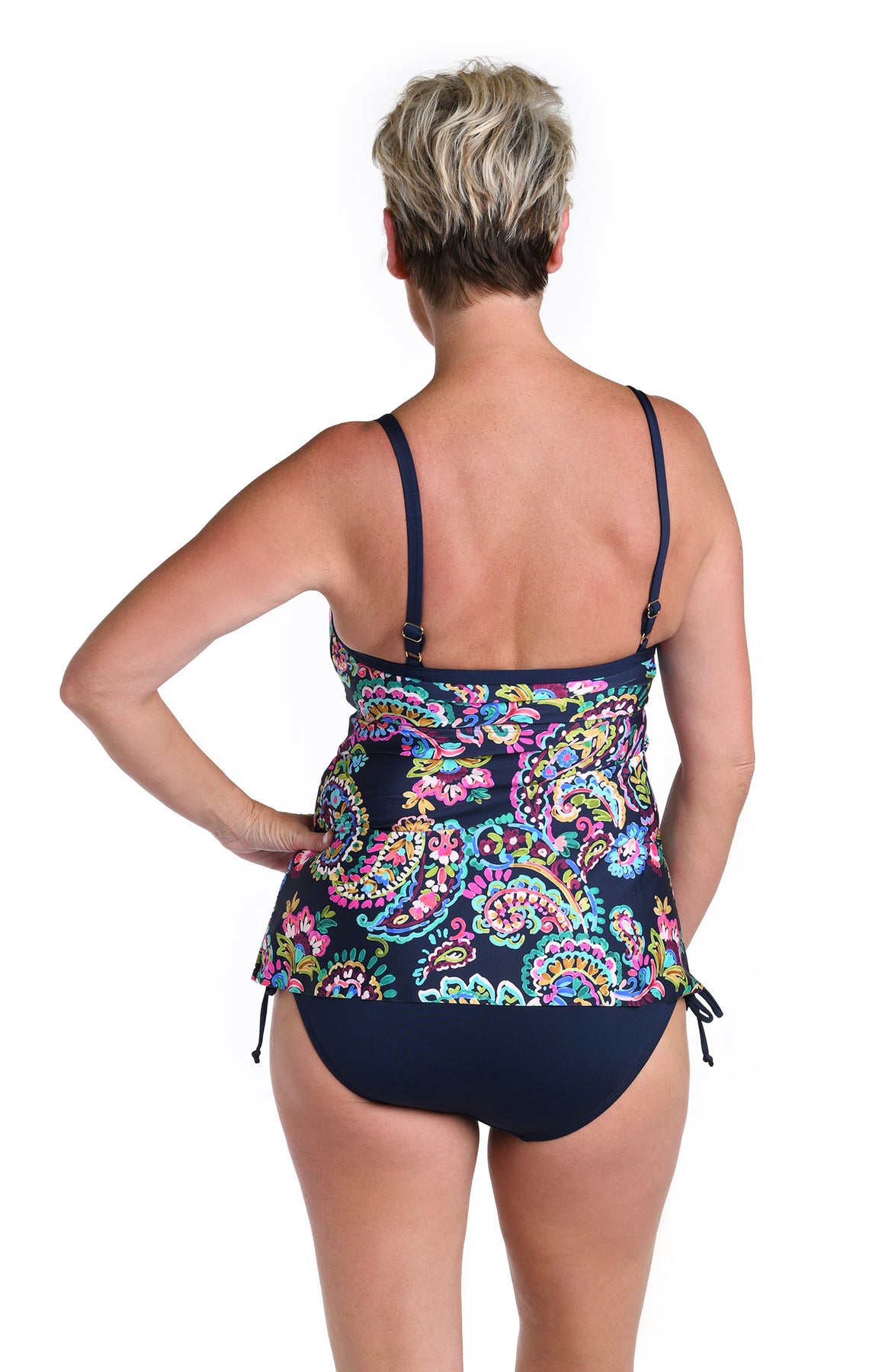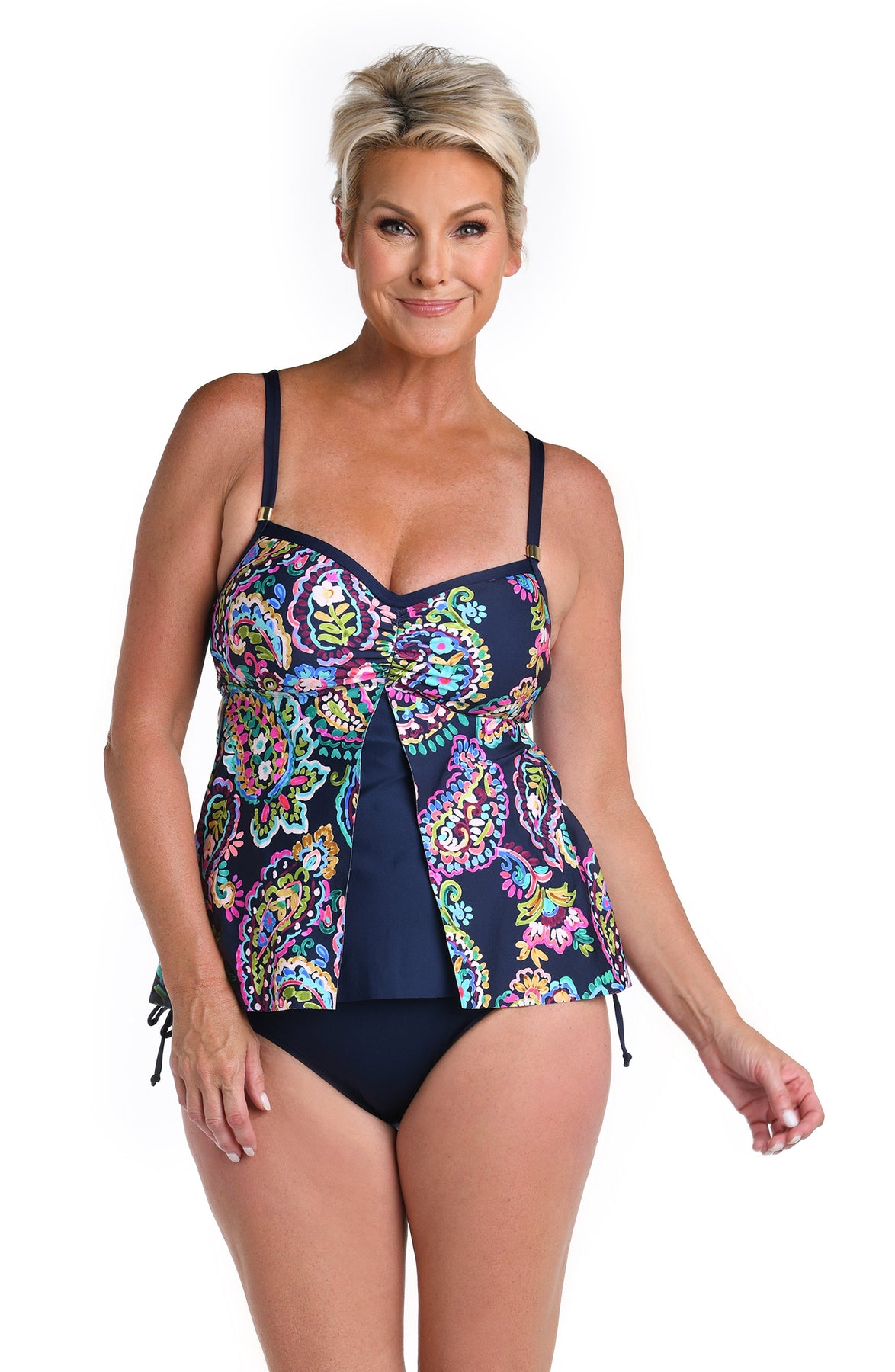 This Underwire Tankini Top from our Talavera collection features a high-neckline, underwire support, removable cups, and adjustable straps that will have you feeling comfortable and confident. Top sold separately.